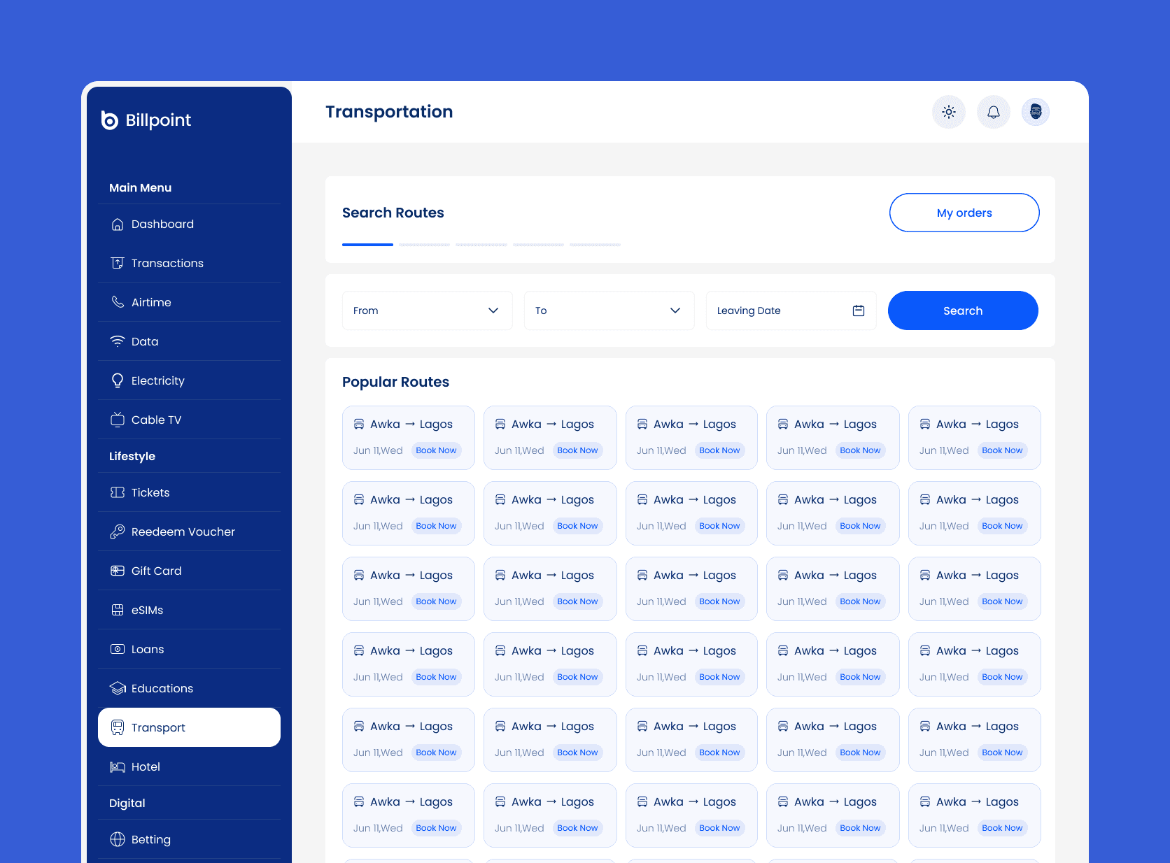 Bill payments in Nigeria are often scattered across multiple platforms, each with different flows, interfaces, and reliability. Users jump between apps for airtime, utilities, flights, and transport, creating confusion and inconsistent experiences.