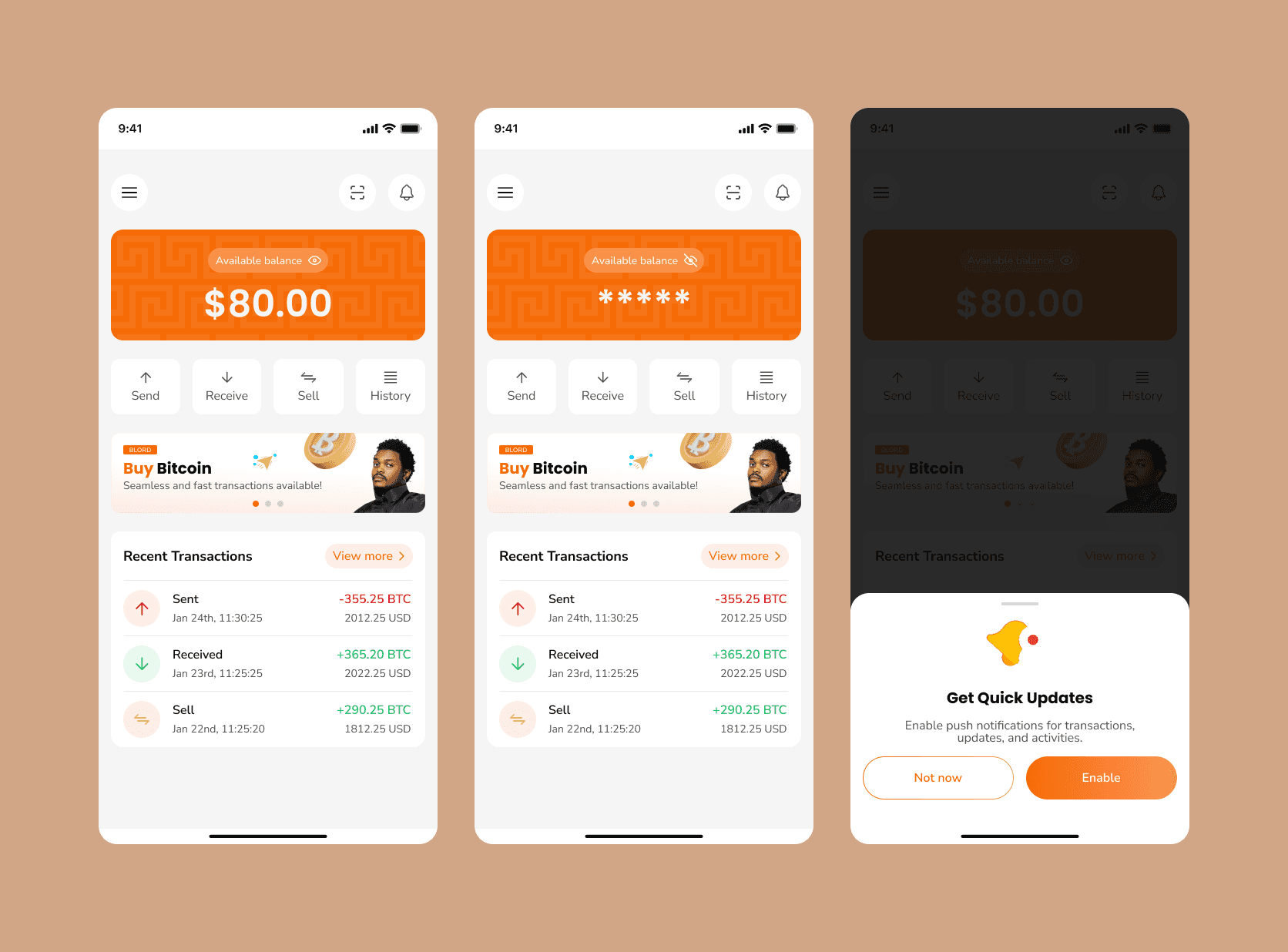 Bitshop is a crypto mobile app that enables users to buy, sell, receive, and trade cryptocurrencies with ease. The goal of the redesign was to elevate the overall user experience and create a more intuitive flow that clearly communicates the app’s core services.