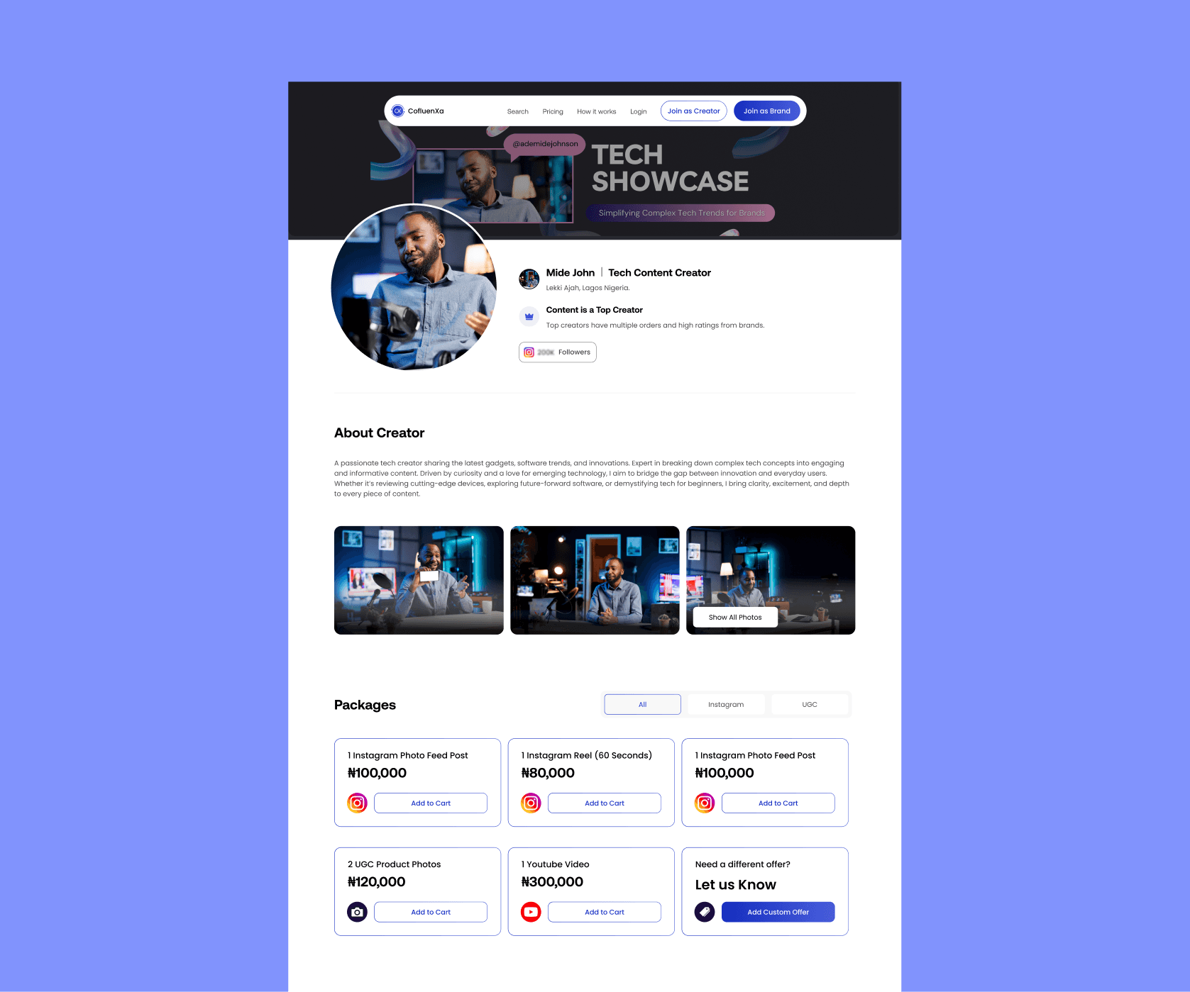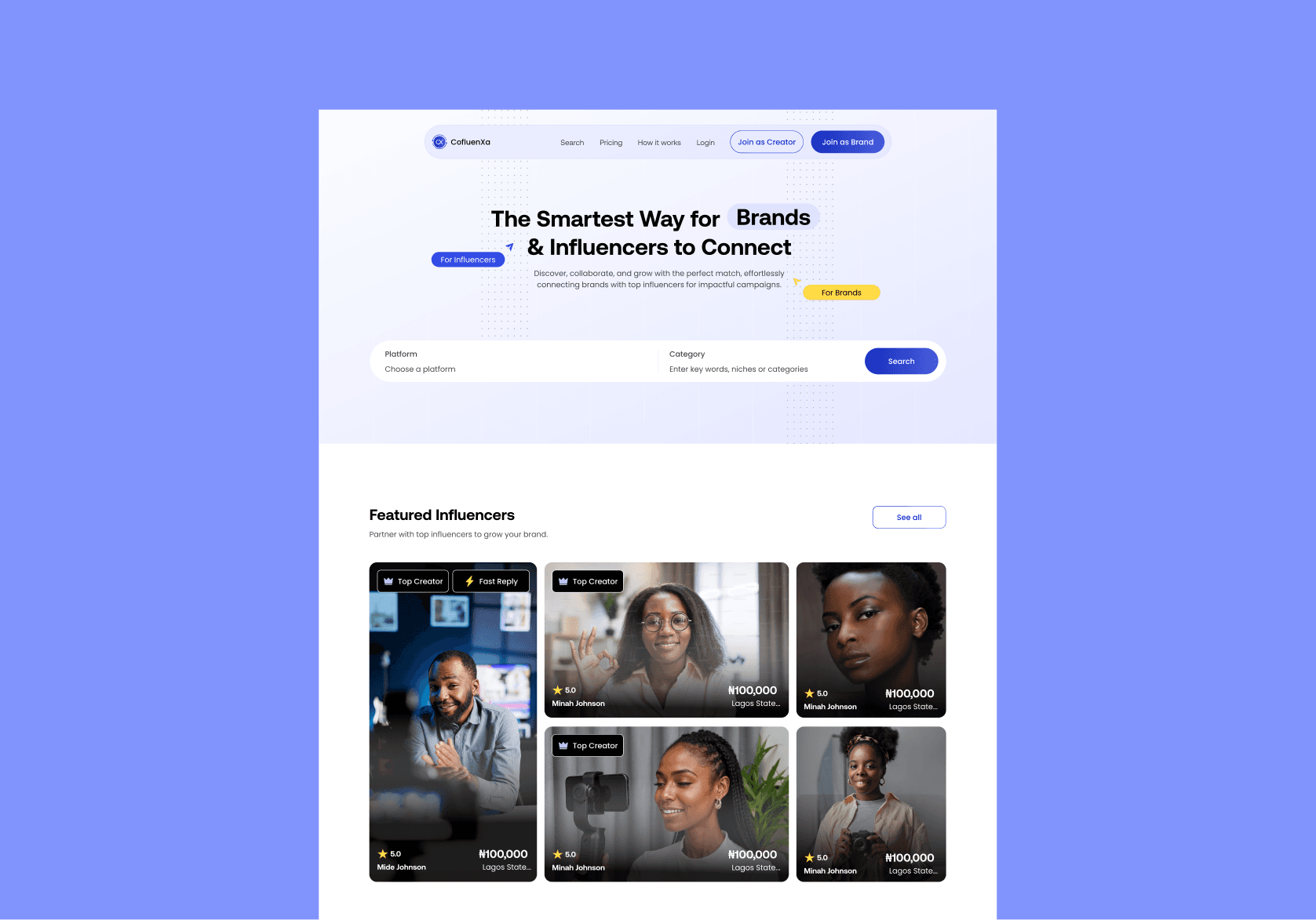 Confluenxa is a platform that allows brands and influencers to connect, collaborate, and manage partnershipsefficiently. I designed the web app to highlight its key features while creating a seamless and engaging user experience from the main website to the full platform.