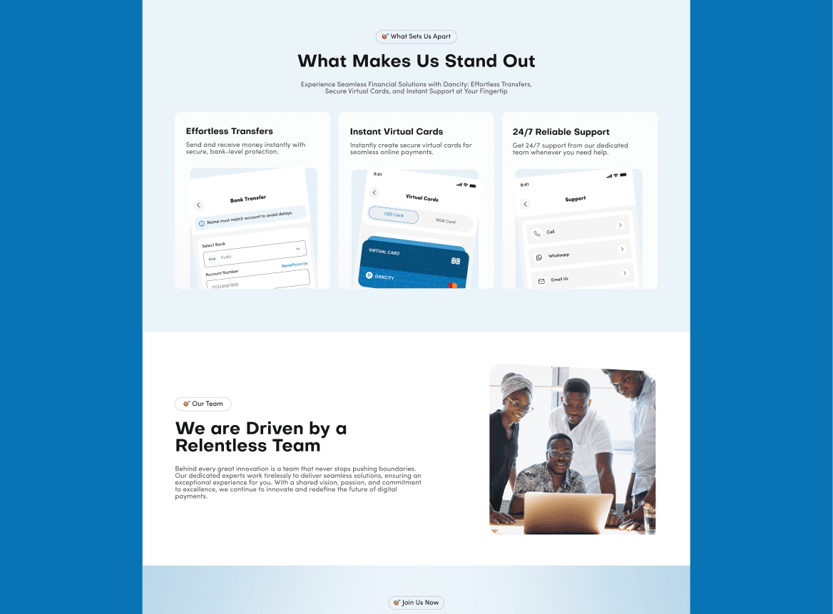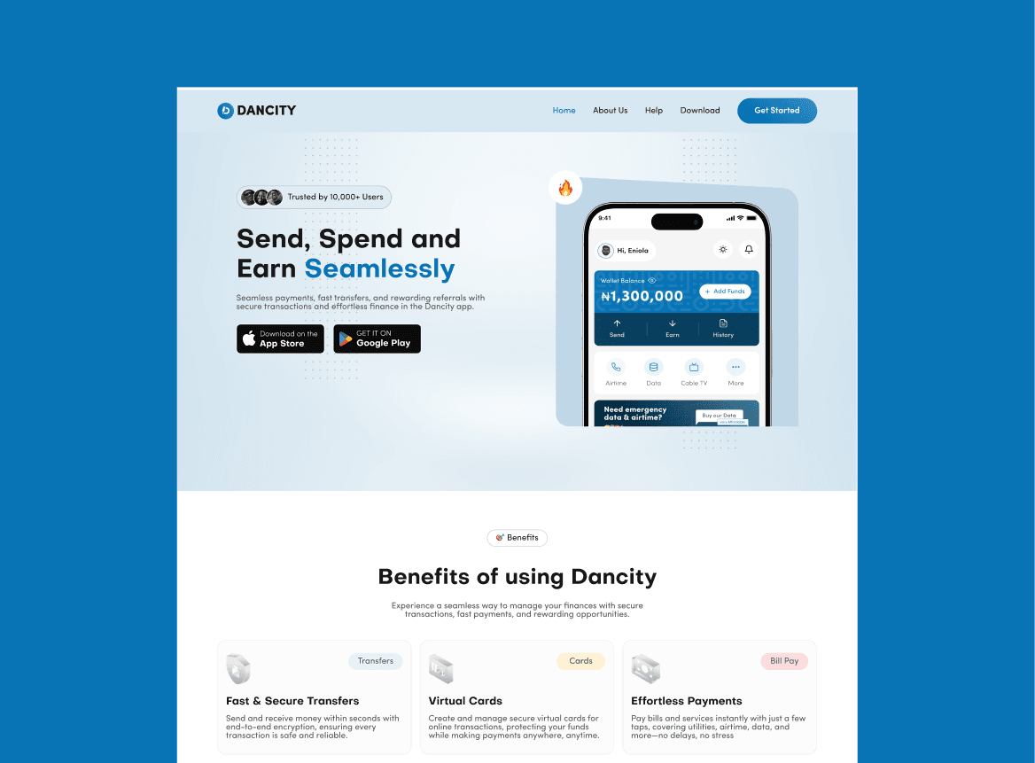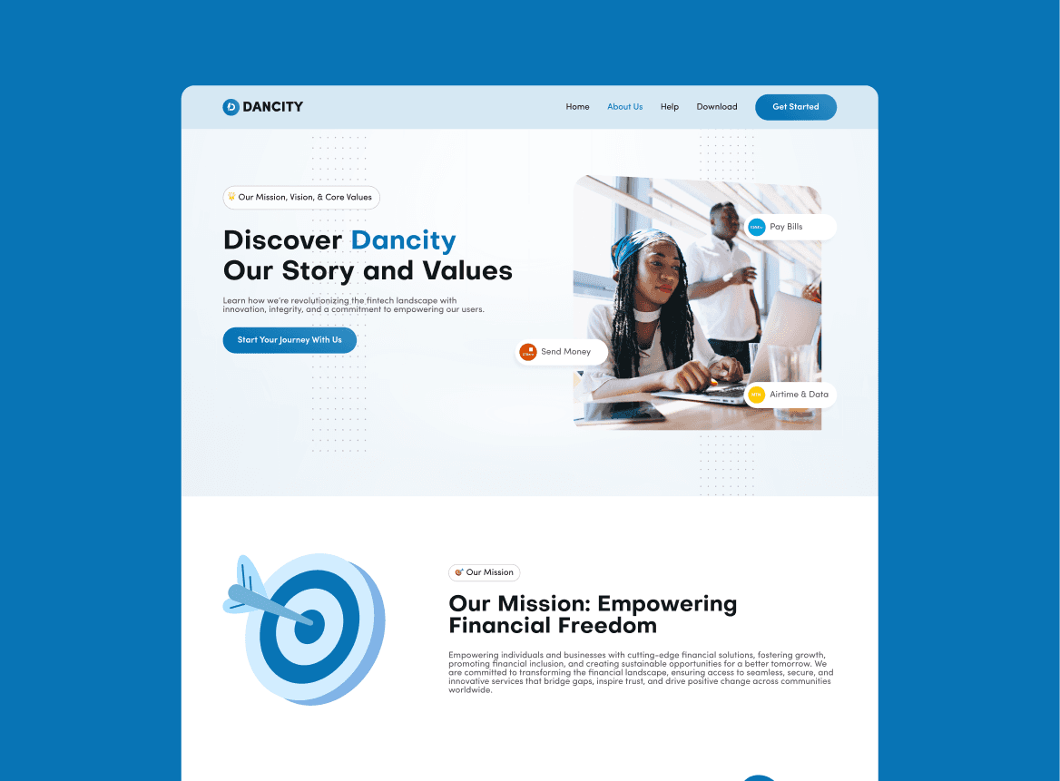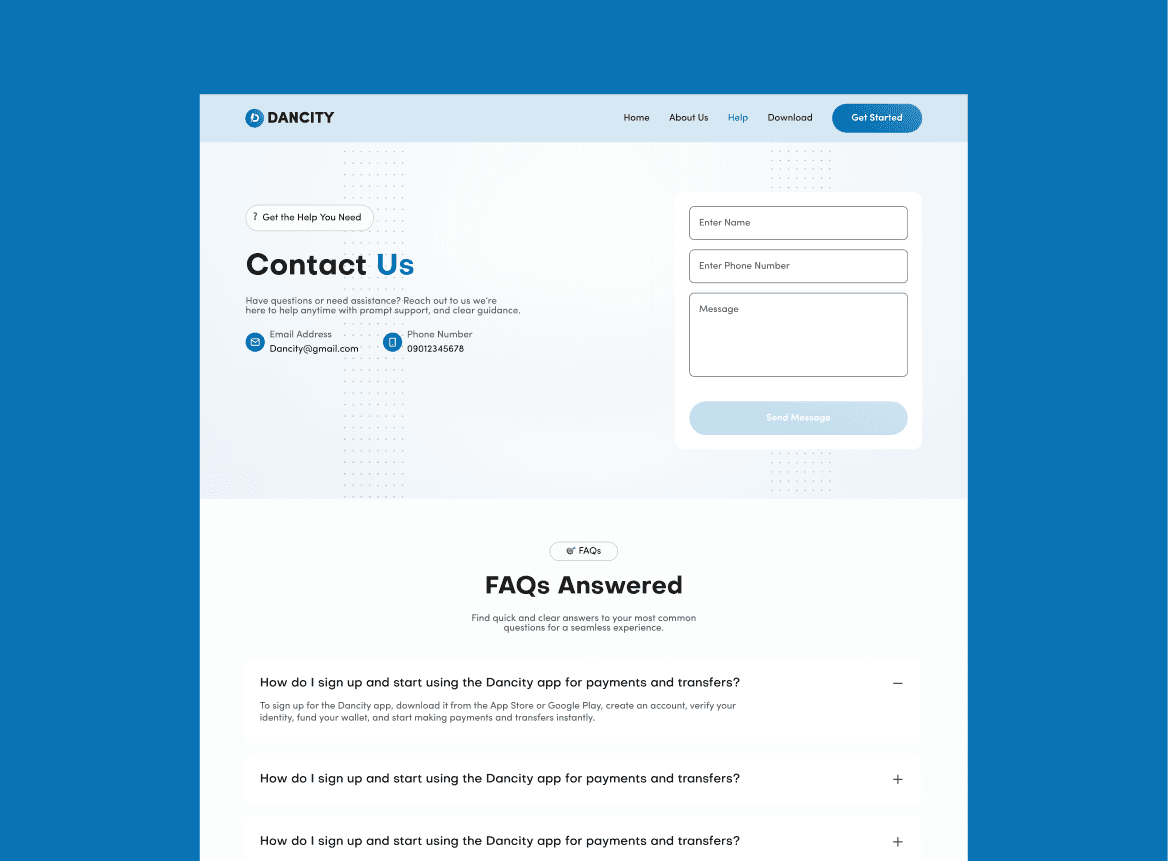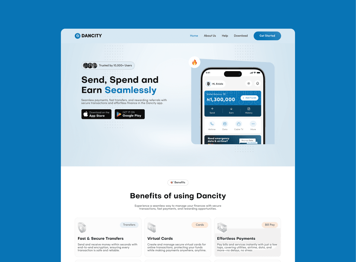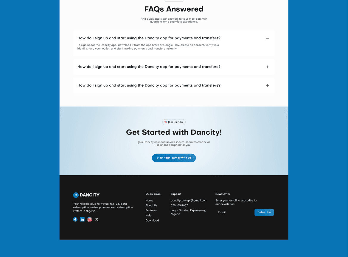 The goal of the Dancity landing page was to clearly communicate the essence of the platform, what it does, who it serves, and why it matters — all within a clean, trustworthy, and easy-to-navigate layout. The website needed to introduce the brand at a glance, highlight its core value, and provide a seamless access point for users to download the mobile app without confusion or friction.