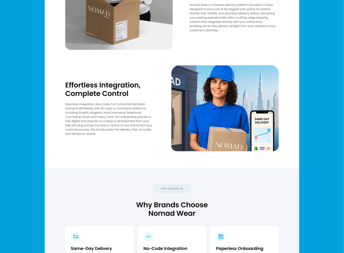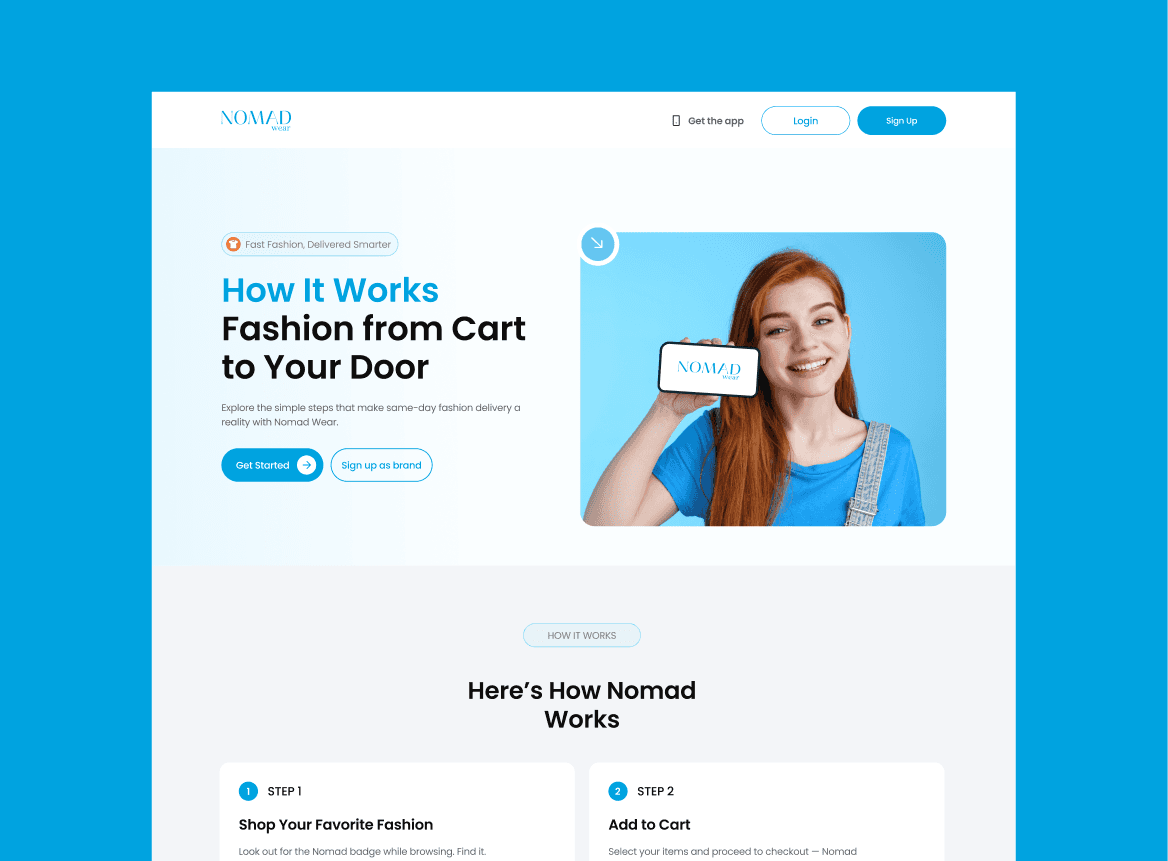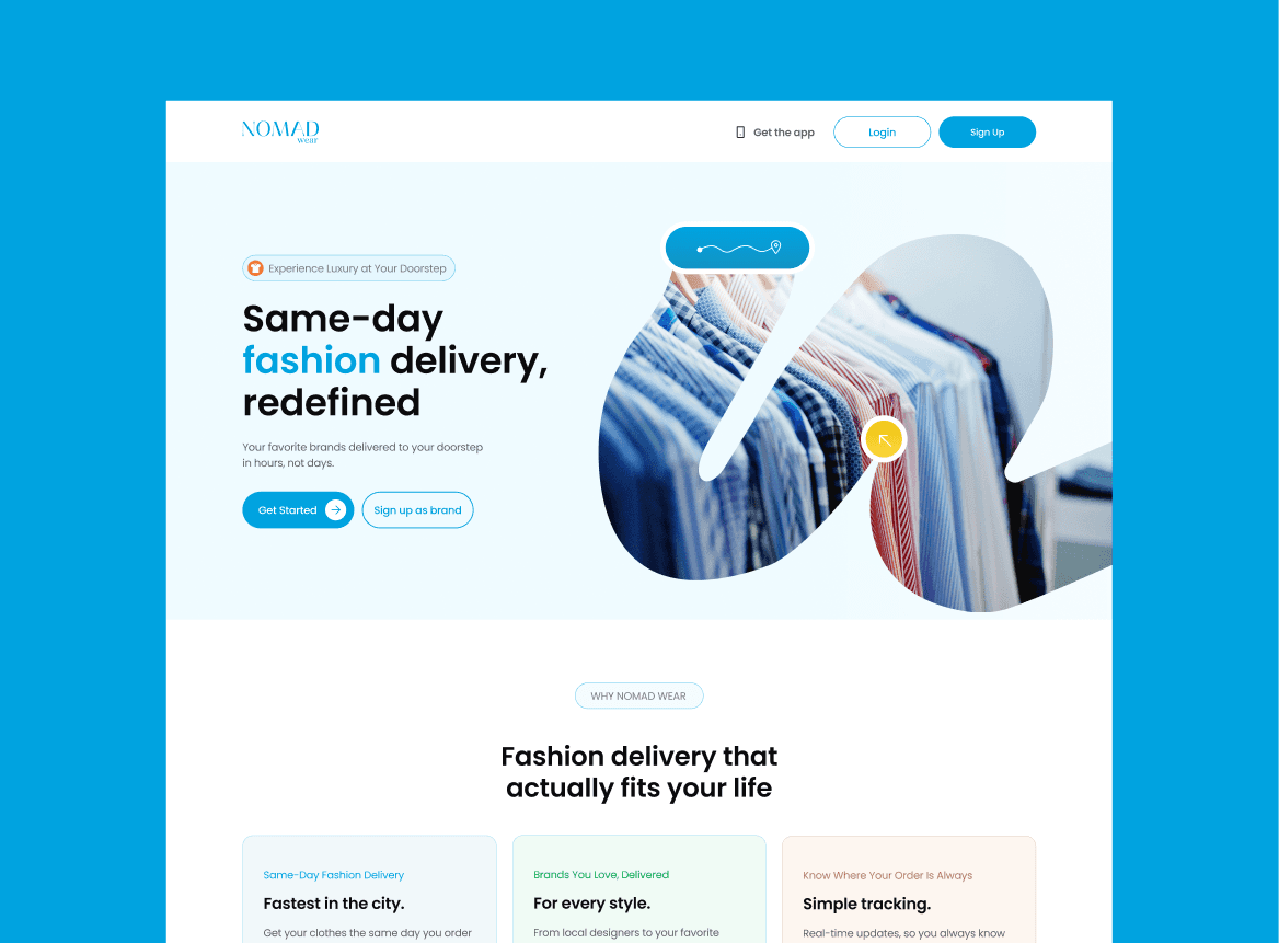 For the Nomad Wear website redesign, I focused on creating a clean, modern, and intuitive web experience that clearly communicates the brand’s identity and product value. The design highlights essential information while maintaining a smooth, minimal aesthetic optimized for both desktop and mobile.