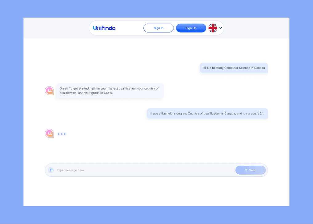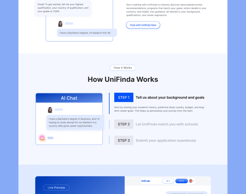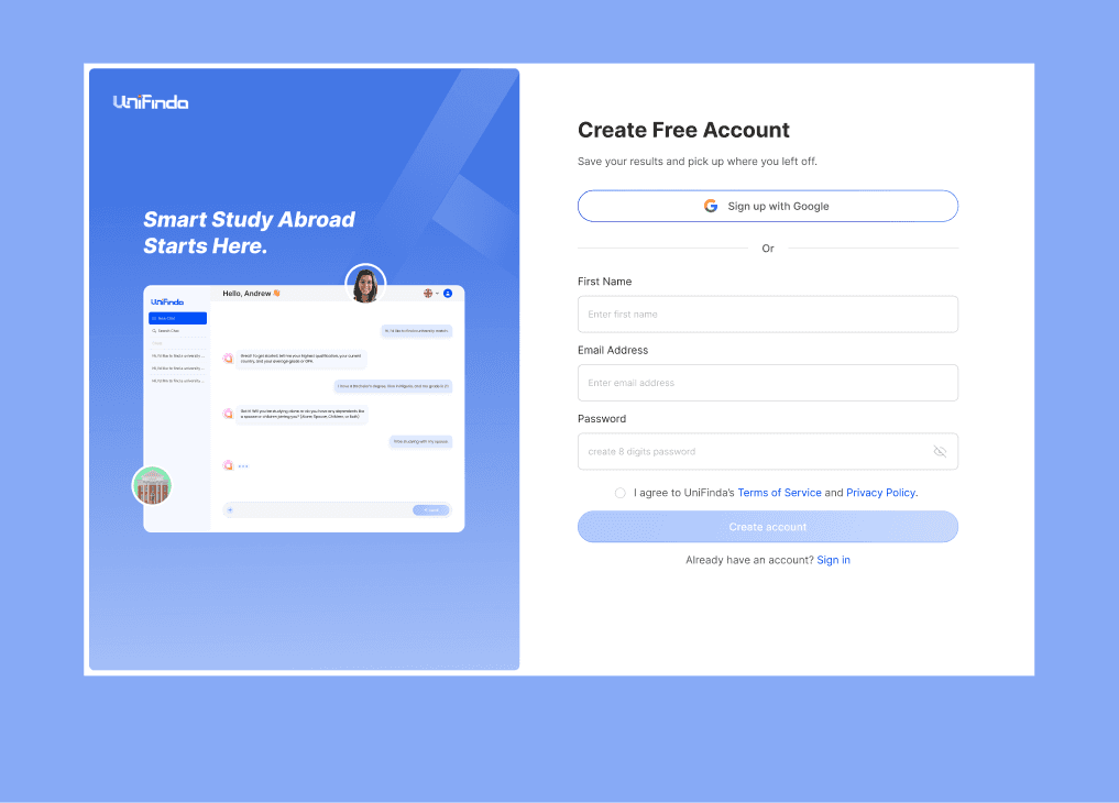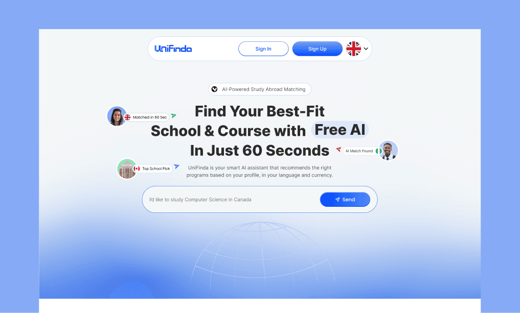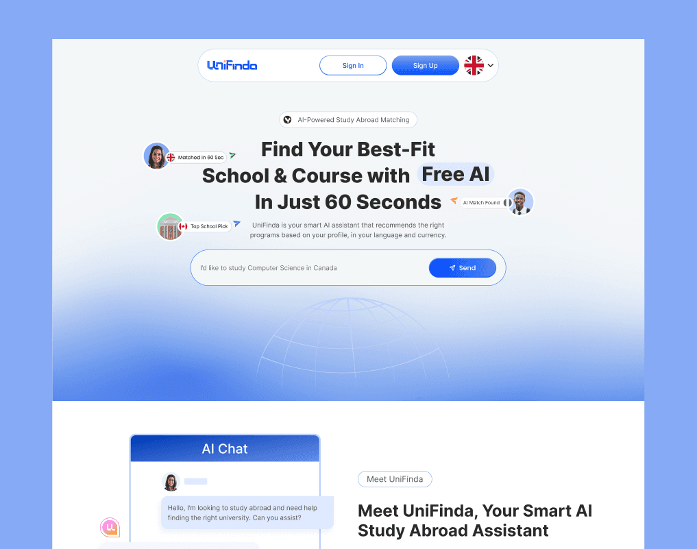 Unifinda AI is a platform that helps students find the best-fit universities abroad.